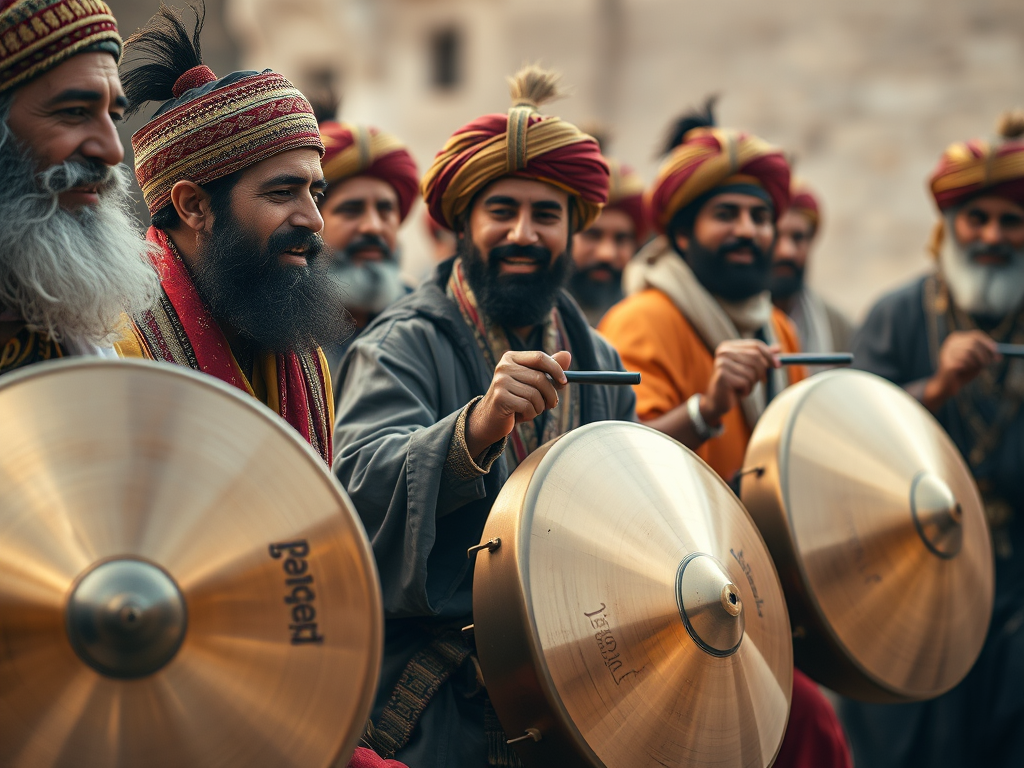 Our ai generated image depicting oriental musicians playing mighty cymbals